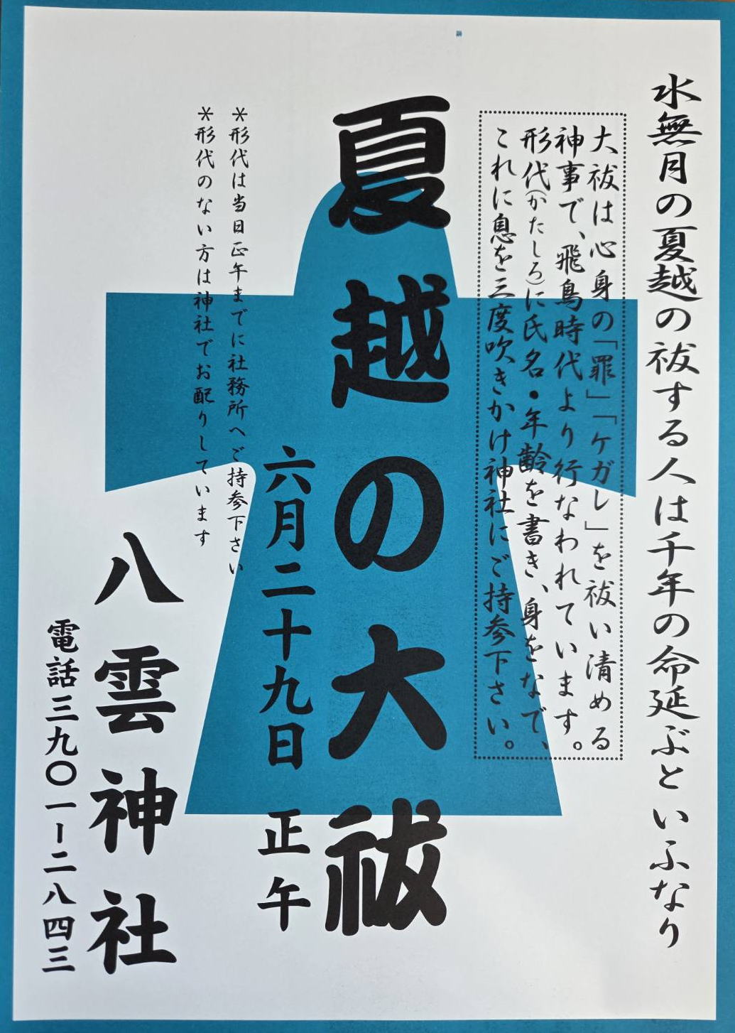 | 夏越の大祓 6月29日(日)正午 |